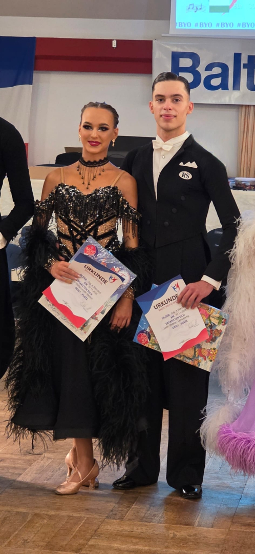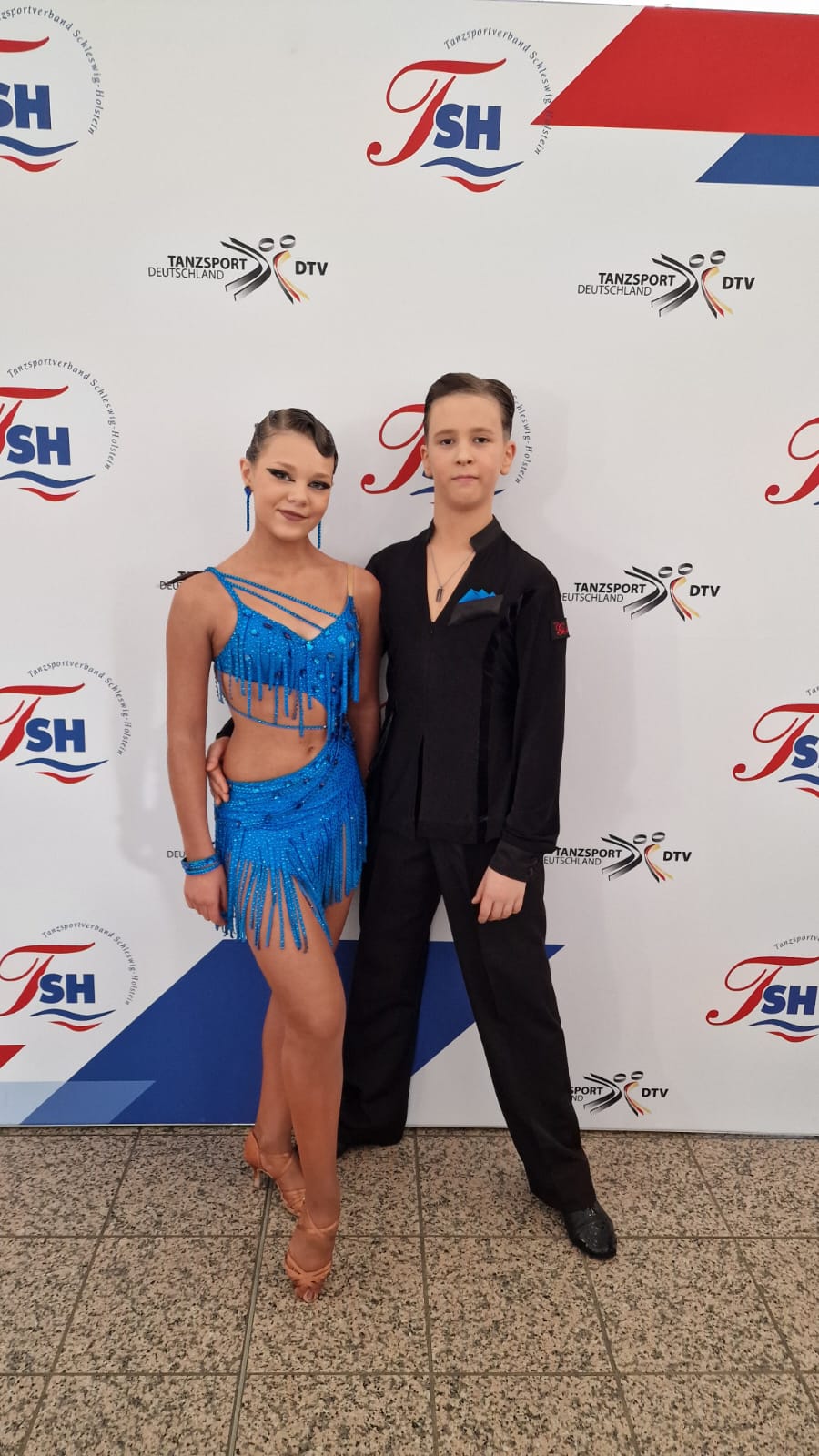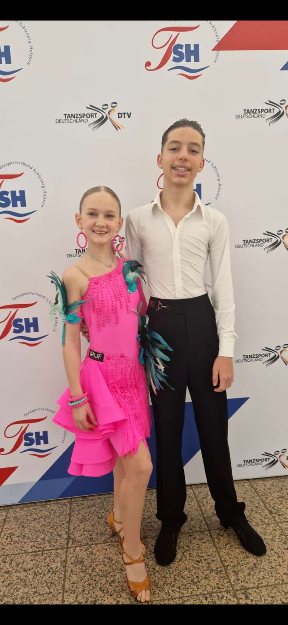 Für Julian Rettich und Mia Hartig war die Baltic Youth Open die erste Turnierteilnahme als Tanzpaar. Davon ließen sich die beiden aber nicht aufhalten: Insgesamt tanzten sie vier Turniere und erreichten in allen vier das Finale. Am Samstag belegten sie bei den Junioren I C Latein Platz 7, während sie bei den Junioren II C Latein einen starken 4. Platz erzielten. Am Sonntag ging es direkt weiter: In der Kategorie Junioren I C Latein belegten sie einen guten 6. Platz. Über das letzte Turnierergebnis konnte sich das junge Paar besonders freuen. Bei den Junioren II C Latein schafften sie es sogar auf das Treppchen und sicherten sich die Bronzemedaille.
